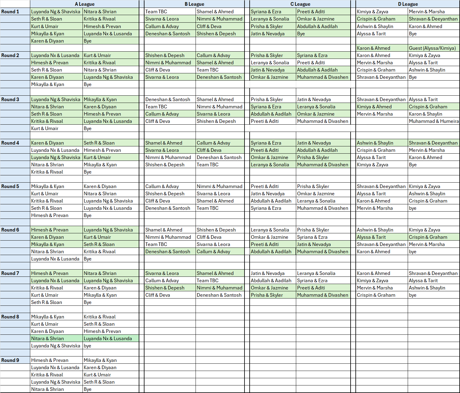 League dates : 16th, 23rd, 30th January, and 13th, 20th February 2026