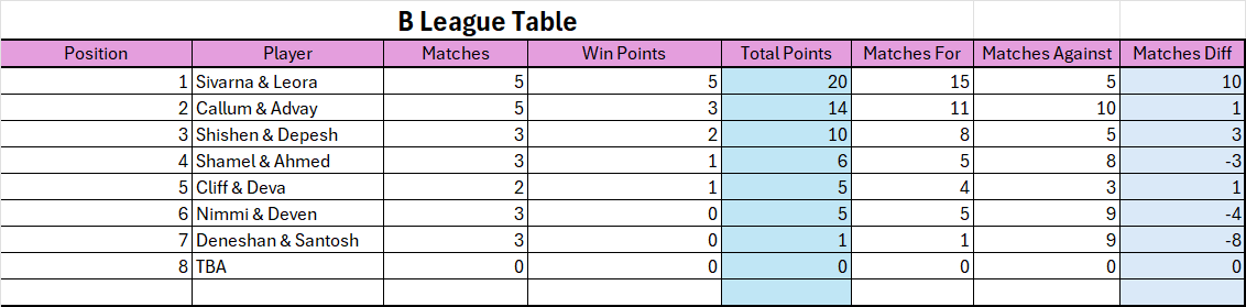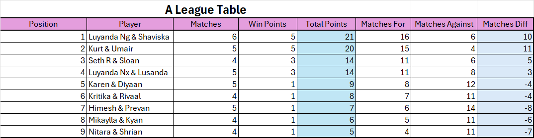Stronger partner will determine which league the team will be placed in.