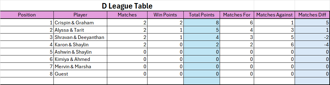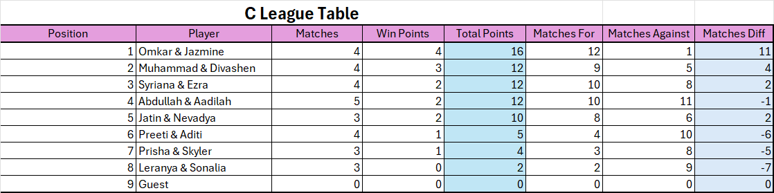 Stronger partner will determine which league the team will be placed in.
